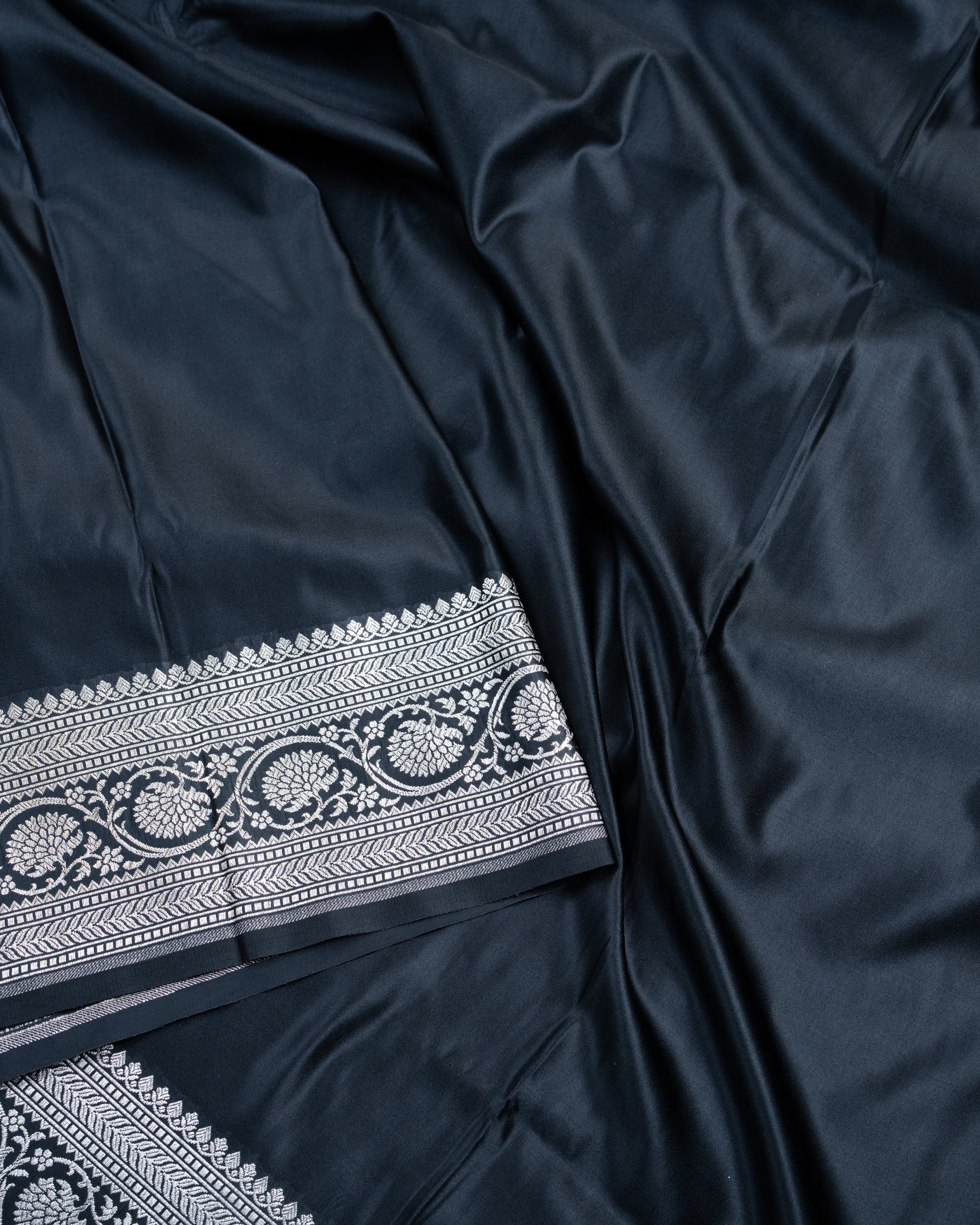Black Mashru Katan Silk Saree with Zari Border