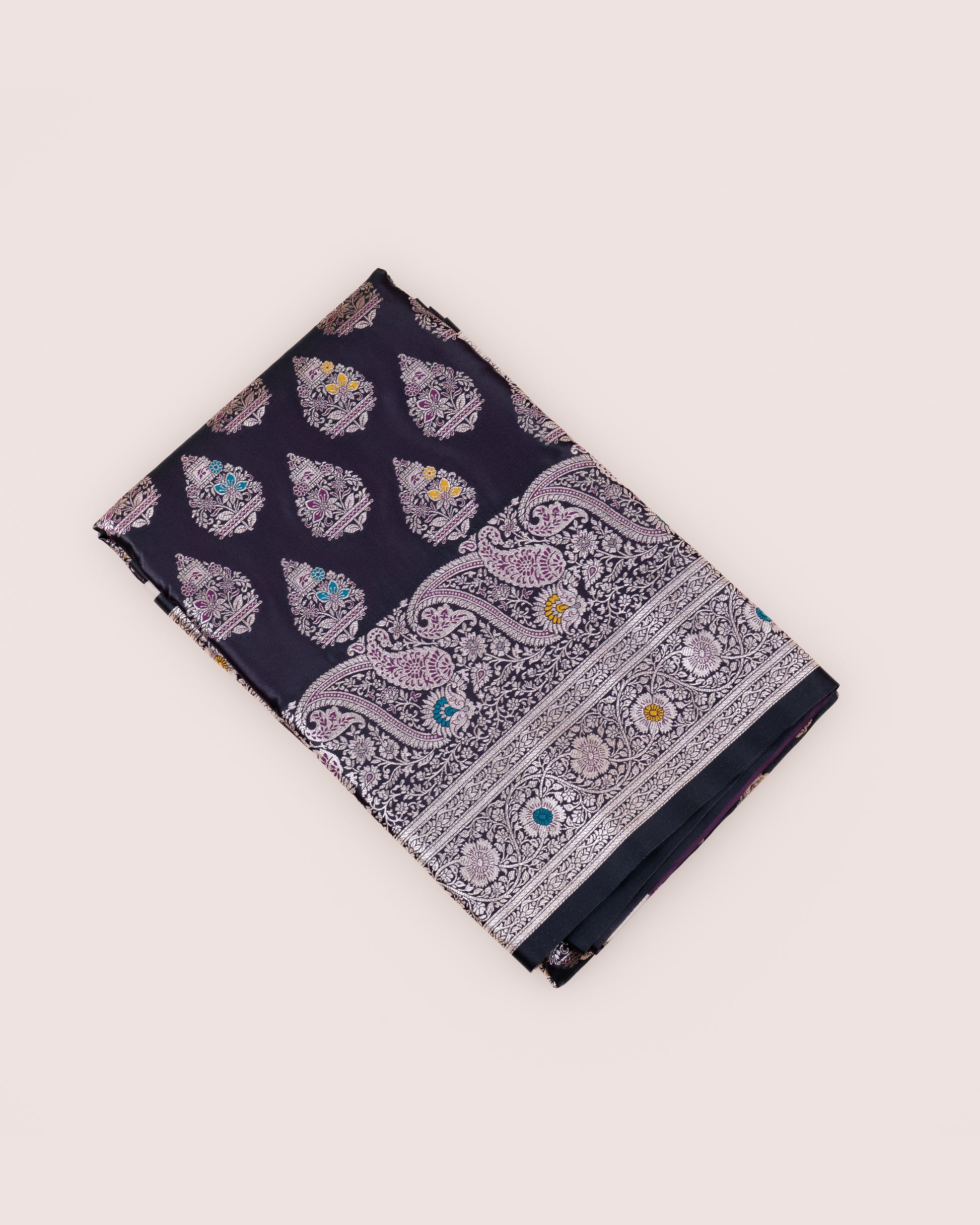 Black Purple Mashru Katan Silk Saree with Meenakari Weave
